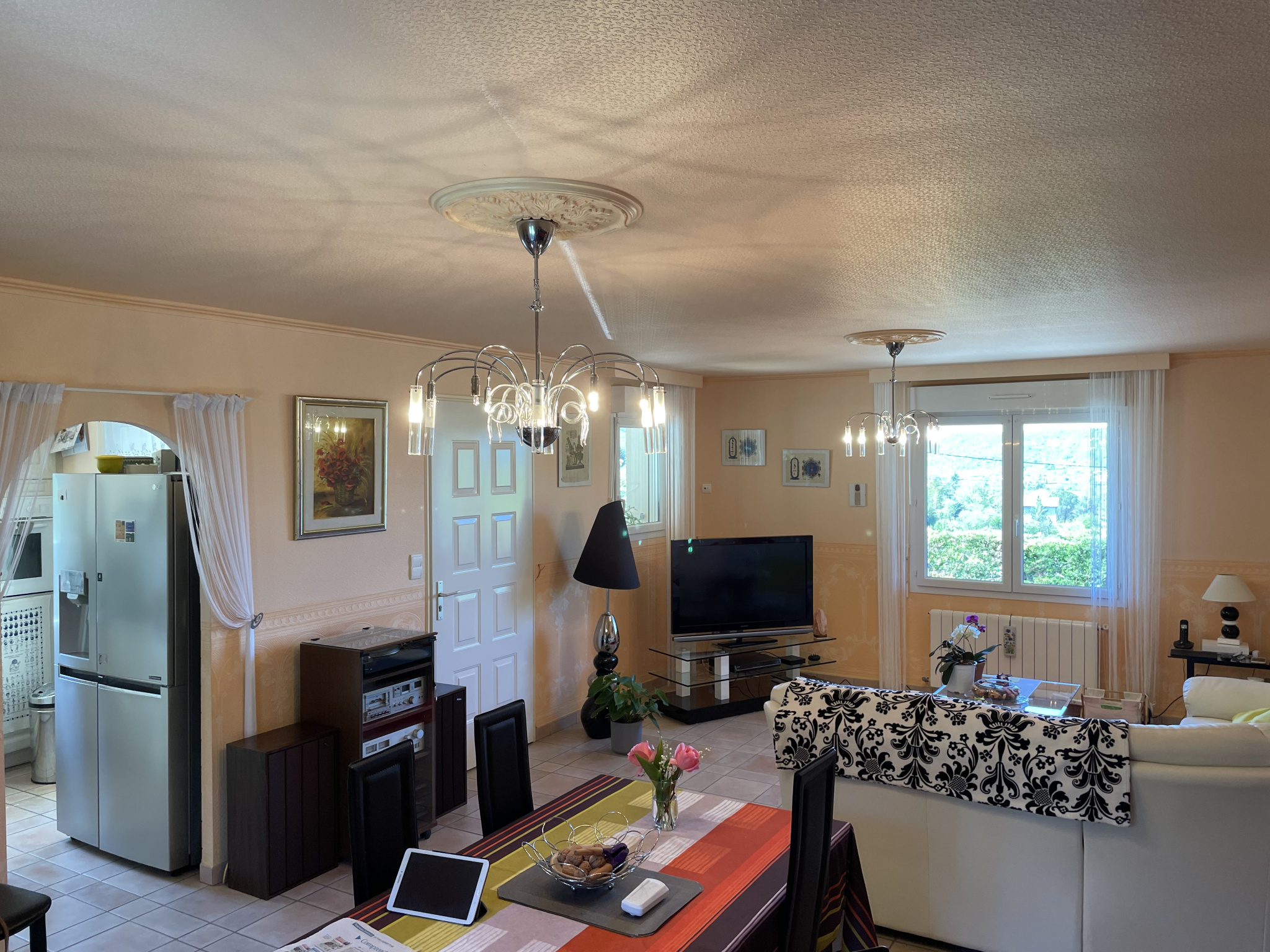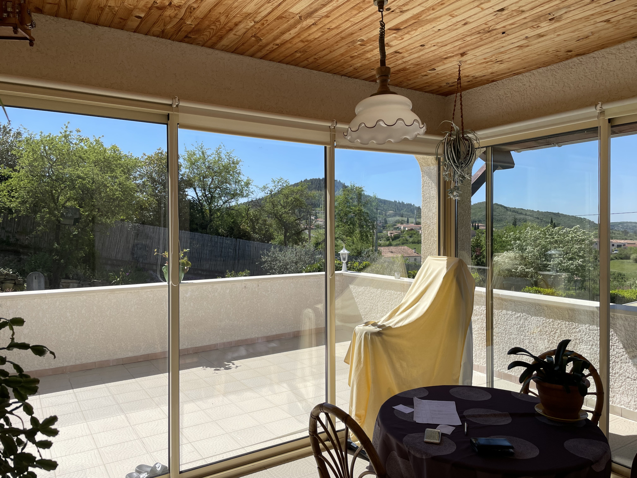 A vendre, Sud Ardèche, Villeneuve de Berg, situé en position dominante avec magnifique vue sur le village, ensemble de deux logements comprenant : une villa d'environ 74.2 m2 habitables comprenant : 2 chambres, une cuisine indépendante, un salon-salle à manger, une salle de bains, un wc, une véranda, un cellier, un garage, une terrasse. Un gîte de type chalet d'environ 48 m2 habitables comprenant : une cuisine ouverte sur séjour, une chambre, une salle de bains, un wc, une mezzanine comprenant deux couchages, une terrasse extérieure. Une piscine couverte 7.3 X 3.60. Le tout sur un terrain clos et arboré d'une contenance de 2187 m2. Environnement très agréable. A découvrir ! Honoraires à la charge du vendeur. Erp consultable en agence. Estimation des coûts annuels d'énergie du logement entre 630€ et 920€. Agence Dupont Immobilier, partenaire de votre projet immobilier. Retrouvez-nous sur www.ardeche-immobilier.com