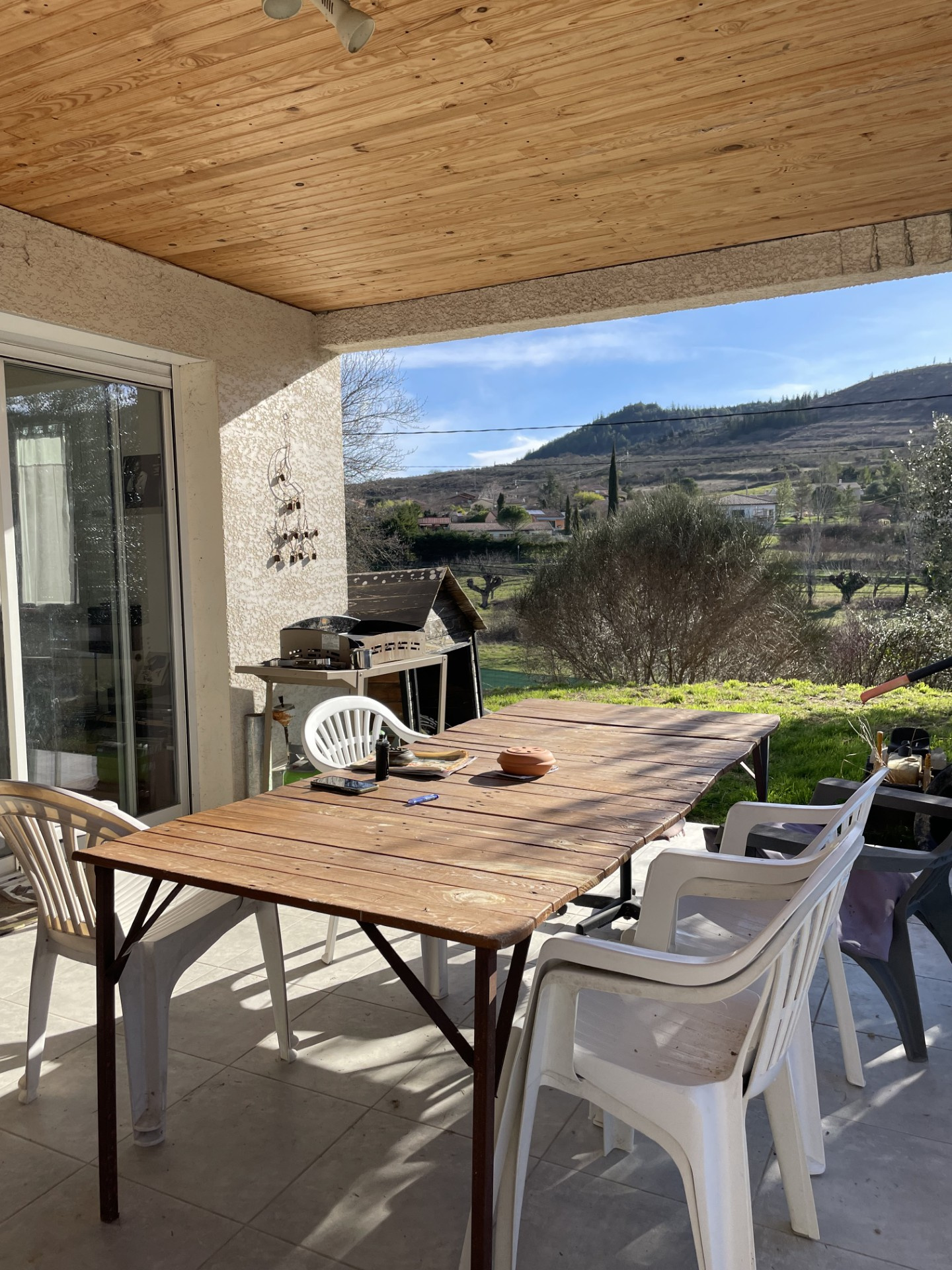 A vendre, Sud Ardèche, Villeneuve de Berg, maison de plain-pied d'environ 115 m2 habitables comprenant une cuisine ouverte sur séjour avec poële à bois, 3 chambres, un bureau, un cellier, un dégagement, une salle d'eau, un wc. Une terrasse. Un garage. Quartier résidentiel. Terrain d'environ 950 m2. A découvrir absolument !!! Honoraires à la charge du vendeur. Erp consultable en agence. Estimation des coûts annuels d'énergie du logement entre 1100€ et 1550€. Agence Dupont Immobilier, partenaire de votre projet immobilier. Retrouvez-nous sur www.ardeche-immobilier.com